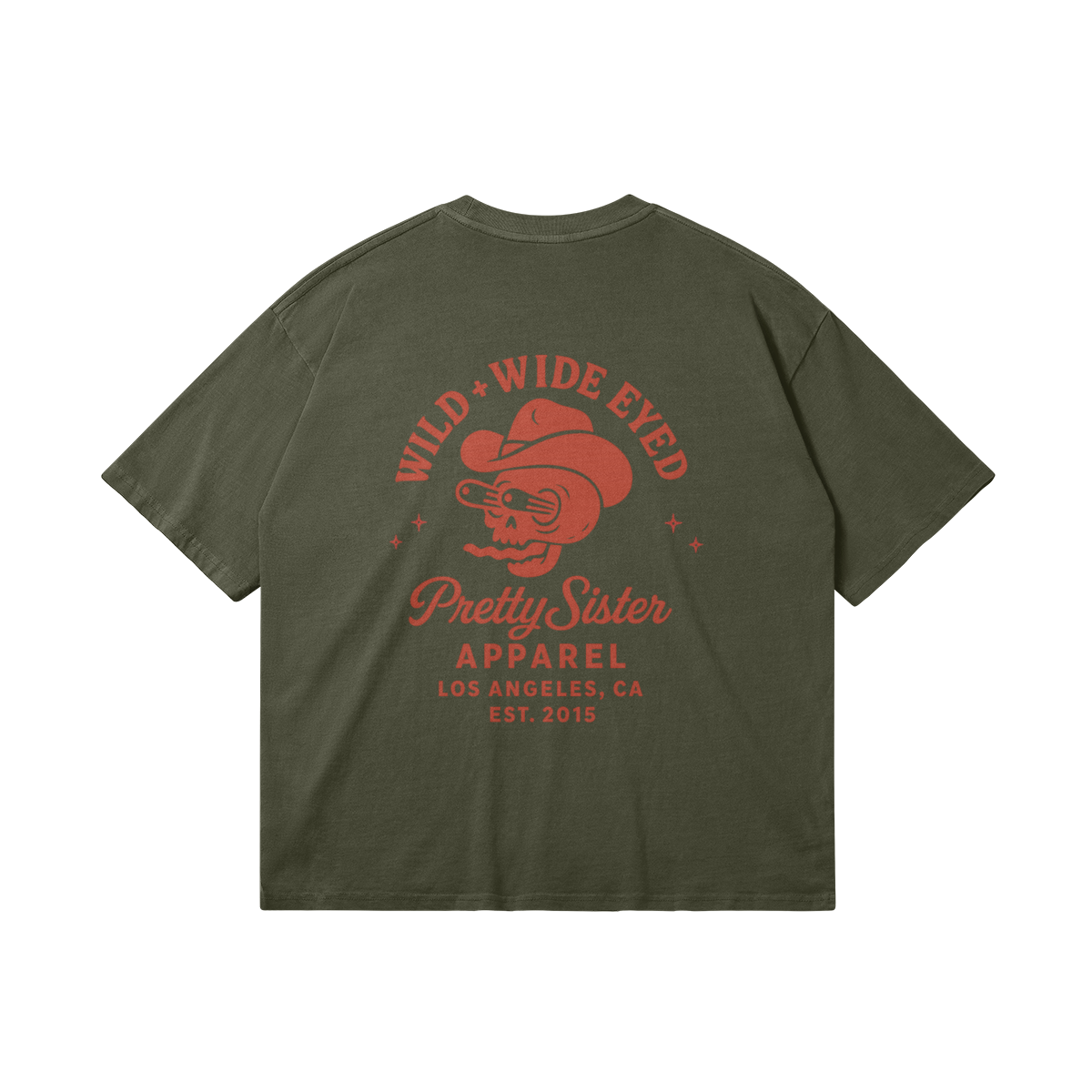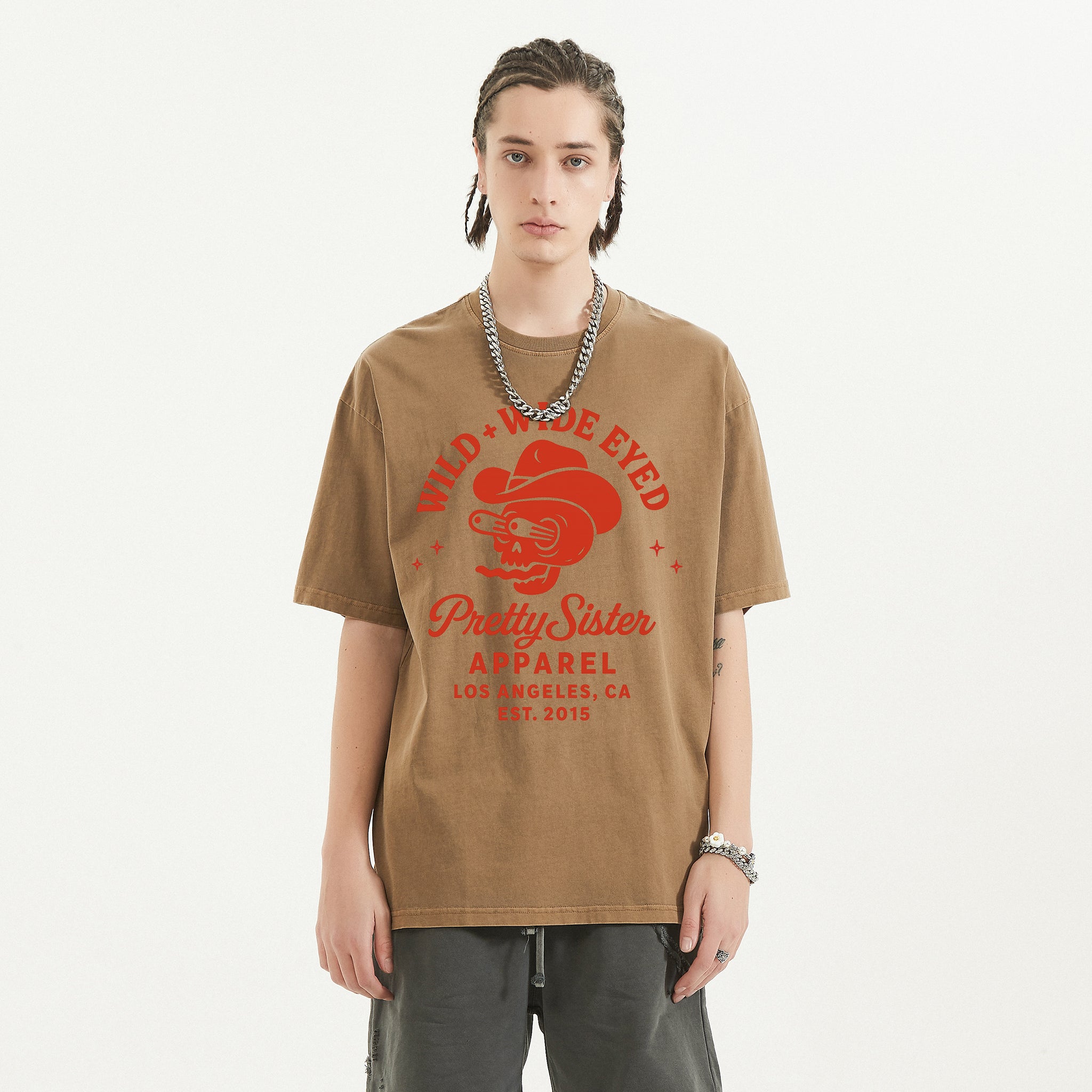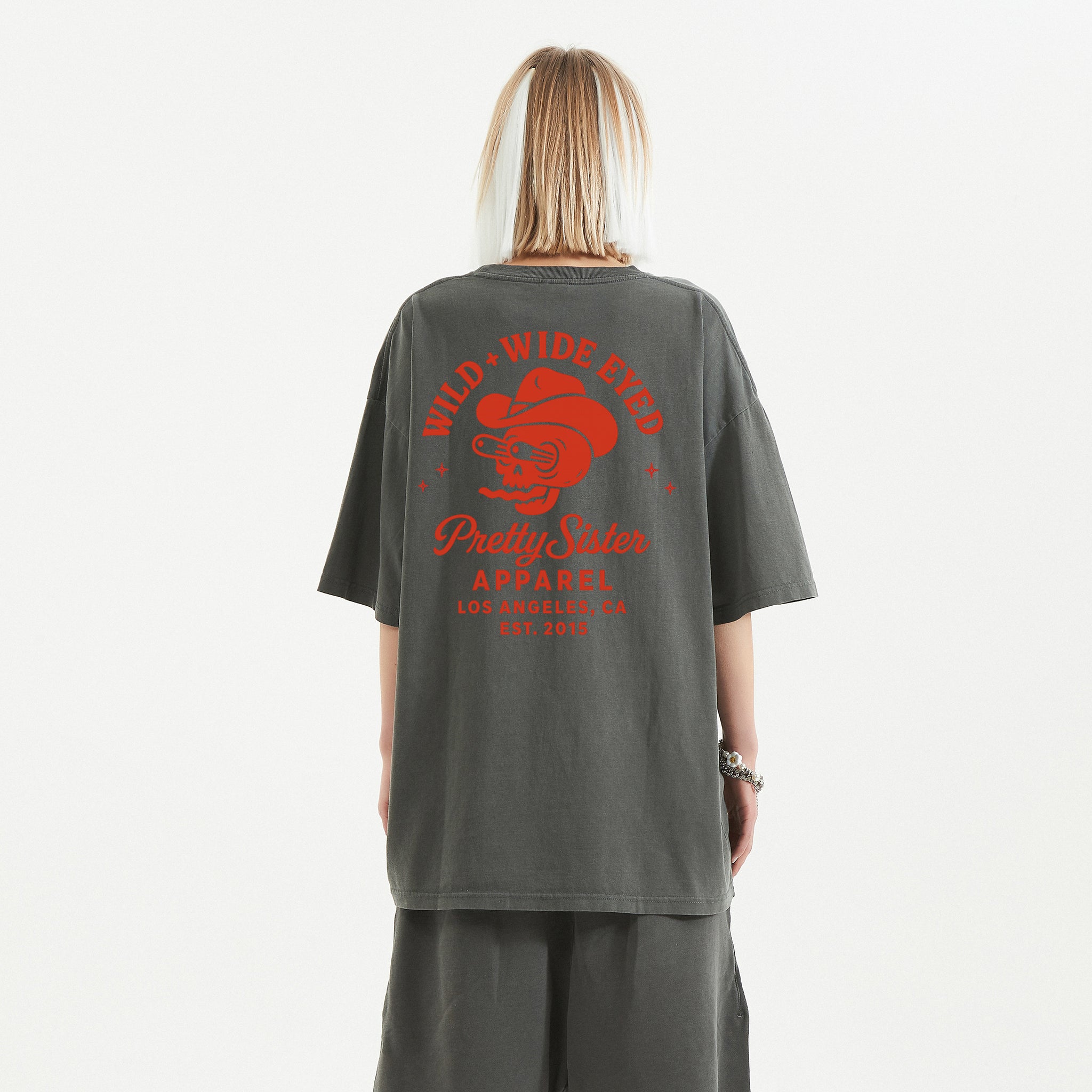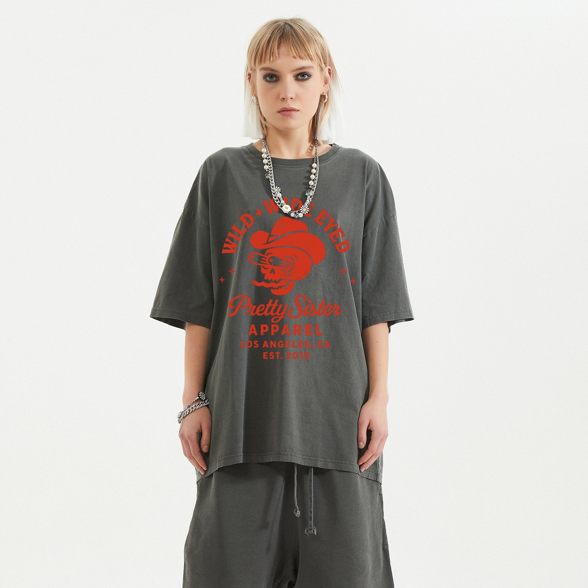 This oversized T-shirt features a vintage-inspired faded effect that adds to an effortless street look with large design front and back Made from 100% combed cotton, the tee is soft, skin-friendly, moisture-absorbing, and breathable. We recommend cropping and cutting of sleeves for an extra Outlaw look. The sophisticated color scheme makes it easy to layer up or pair with any bottoms.